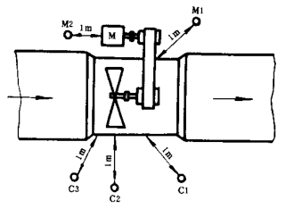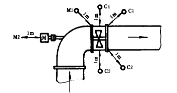 通風機的出氣口均接管道時,測量機殼輻射的噪音,測點位置在通風機主軸水平面內、經過葉輪幾何中心的直線上,距離殼體1m處。測點位置C1、C2……,M1、M2……,見圖11-圖21。