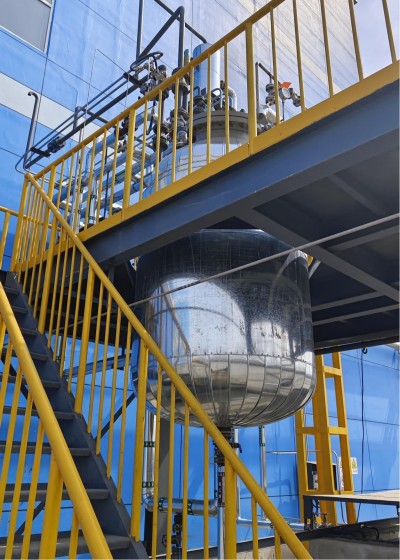 沈陽中化新材料科技有限公司(下稱沈陽新材料),沈陽新材料位于遼寧省沈陽經濟技術開發區細河七北街10號;該項目在原有二期工程項目已建框架上面新建1座先進材料合成車間一,火災危險性為甲類,耐火等級為一級,用地面積為1740.29m2,車間為三層鋼框架結構,建筑面積為4880.28m2,建筑高度為23.65m,分為東西兩個防火分區,防火分區以建筑軸線⑥分隔,軸線①-⑥為車間西側防火分區;軸線⑥-?為車間東側防火分區,每個防火分區建筑面積均小于3000m2,東側防火分區主要包括酯化、縮合、中和、蒸餾、打漿、過濾和精制工段;西側防火分區主要包括精制后的過濾、閃蒸干燥、造粒干燥和包裝工段;在車間三層鋼框架結構布置反應釜、冷凝器、接收罐、機泵、干燥等相關設備;在車間外西側布置氯乙烷充裝設備設施,室外北側布置凝水罐、精品母液接收池、污水收集池A、污水收集池B等設備設施。